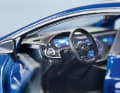 Den ersten Viertürer lackiert Maisto in Selenitgrau Magno, den zweiten und dezentem Sodalithblau-Metallic. Als Felge ist das 21-zöllige AMG-Leichtmetallrad im „Vielspeichendesign“ montiert. Wir haben nachgezählt: Es sind genau 20. Bei der Außendekoration sorgen hellsilberne Zierringe im Bereich der Kühlluft.ffnungen, der Grill- und Scheinwerferumrahmung, der Fensterflächen und Türgriffe für einen Hauch von Luxus. Die Mercedes- Sterne sind auf die Hauben sehr fein aufgedruckt, Hauptscheinwerfer und Rückleuchten fugenfrei in die schnittige Karosserie integriert, und die Rückspiegel haben Chromflächen.