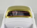Für Pininfarina sollte diese Studie auch ein Türöffner zum amerikanischen Markt sein. Der offene Wagen hatte einen ovalen Grill, einen halbrunden Tacho und ein zweifarbiges Zweispeichen-Lenkrad mit Hupkranz. Die Sitze und Türinnenteile waren in Weiß gehalten. An der Miniatur von Brausi springt zunächst einmal die satt schimmernde Lackierung der wohlproportionierten Karosserie ins Auge. Ebenfalls auffällig: der schillernde Rahmen um die Windschutzscheibe und die hell glänzenden Chromteile im Bereich der Stoßstange, der Radkappen und der Umrahmung des Grills sowie der Kühlluftkiemen seitlich in den vorderen Kotflügeln dieses sehr speziellen Series 62. Dazu liefert Brausi eine weiße Sitzbank, Türinnenteile mit verchromten Zuziehgriffen und ein filigranes, zweifarbiges Lenkrad für seinen Resine-Roadster mit. Die Verarbeitung des blauen Cadillac in 1:43 ist sehr gut.