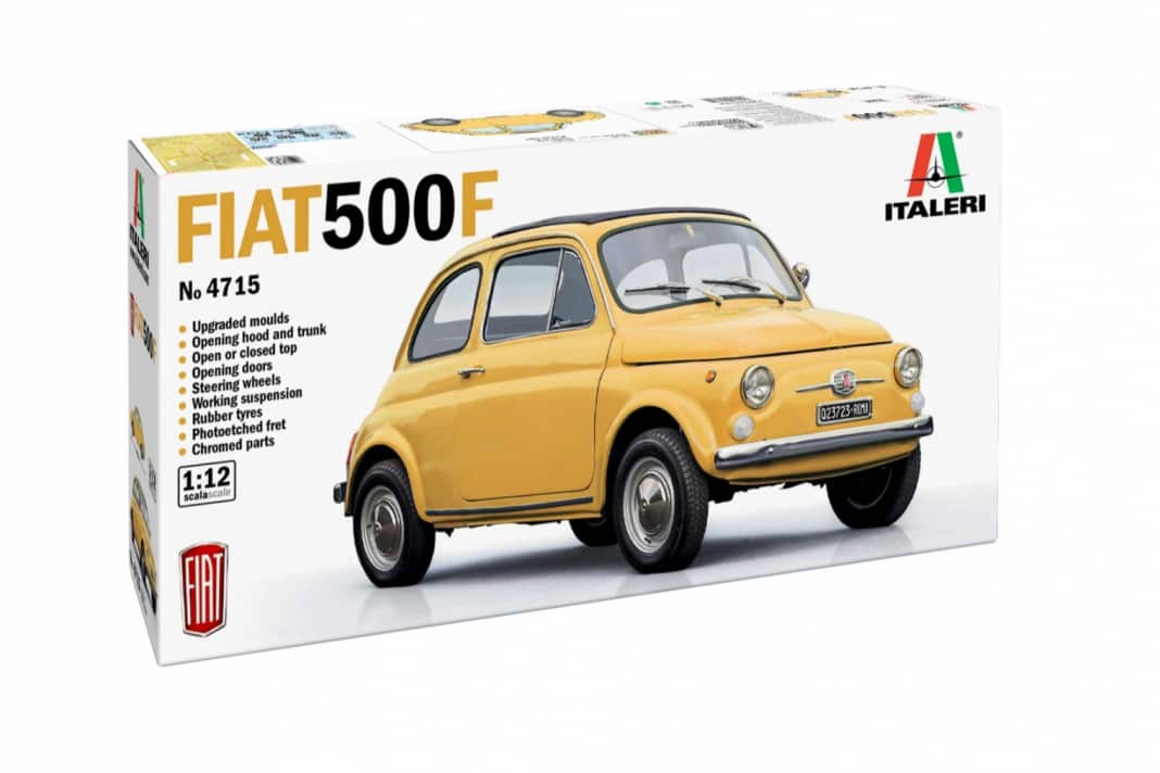 Der große Erfolg gibt dem Kleinen recht: Vom 500er baute Fiat zwischen 1957 und 1977 sagenhafte 3.702.078 Stück. Kein Wunder, dass sich die norditalienische Traditionsfirma Italeri mit dem Thema beschäftigt. Der Bausatzhersteller bringt jetzt ein Upgrade zu seinem bereits bekannten 1:12-Plastikbausatz zum klassischen Fiat 500. Das Vorbild liefert ein 500er der Generation F nach 1965, eindeutig zu erkennen an den vorne angeschlagenen Türen. Die zahlreichen Bauteile verteilen sich bei diesem Kit auf nicht weniger als neun Gießäste. Offensichtlichste Neuerung: Die Karosserieteile sind in Gelb eingefärbt.