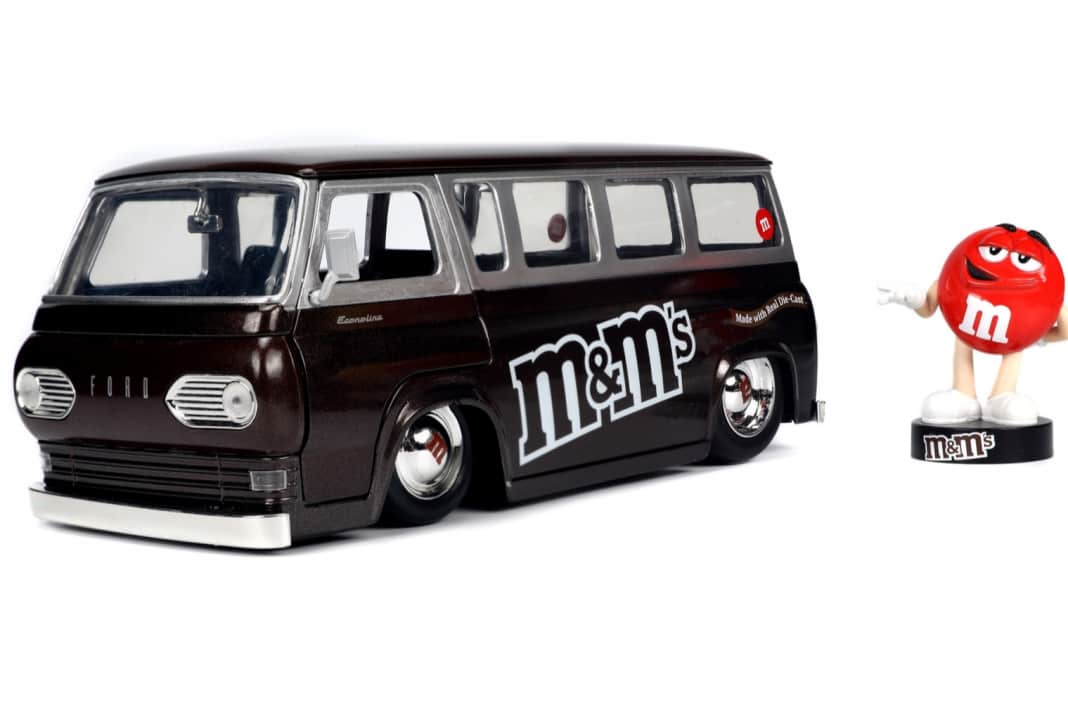 Jada Toys kombiniert ab sofort heiße US-Schlitten von Ford, Cadillac und Jeep mit Schokolinsen, die garantiert nicht schmelzen – auch im Sommer! Der Reihe nach. Als in den Dreißigern einige Staaten in der USA und Kanada unter einer extremen Hitzewelle litten, schmolzen auch die Umsätze der Schokoladenfabrik von Forrest E Mars und Bruce Murrie aus Virginia dahin. Deshalb brachten beide 1941 unter dem Namen M&Ms schokoladengefüllte Linsen mit einer bunt eingefärbten Zuckerschicht auf den Markt, die auch im August im Death Valley, das Schmelzen verhindern kann. Heute gibt es die US-Smarties in bis zu 20 verschiedenen Farben, teilweise sogar in streng limitierter Auflage. Nur gucken, nicht aufessen!